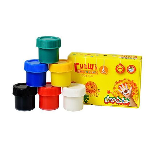 уашь Каляка-Маляка® предназначена для детского творчества. Отлично подходит в качестве первого материала для обучения рисованию. Имеет оптимальное цветовое сочетание, обладает хорошей насыщенностью и чистотой тона. Отличается прекрасной кроющей способностью. При необходимости разбавляется водой.Краски легко смываются с рук и одежды. Безвредны для здоровья ребёнка при использовании по назначению. Изготовлены на основе натуральных компонентов и высококачественных пигментов.В набор входят 6 классических цветов: черный, зеленый, красный, желтый, белый, синий.Объем одной баночки - 17,5 мл.Состав: загуститель, глицерин, вода, декстрин, каолин, биоциды, пигменты.Сделано в России.