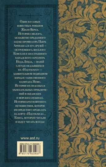 «Двадцать тысяч лье под водой» — один из самых известных романов Жюля Верна. История смелого, беззаветно преданного науке профессора Пьера Аронакса и его друзей — остроумного, весе- лого Конселя и бесстрашного канадского гарпунера Неда Ленда, — волей случая оказавшихся на «Наутилусе» — удивительном подво- дном корабле таинственного капитана Немо. История их опасных и увлекательных приключений в океанских и морских глубинах. Книга, которую читали и будут читать всегда! Для среднего школьного возраста.