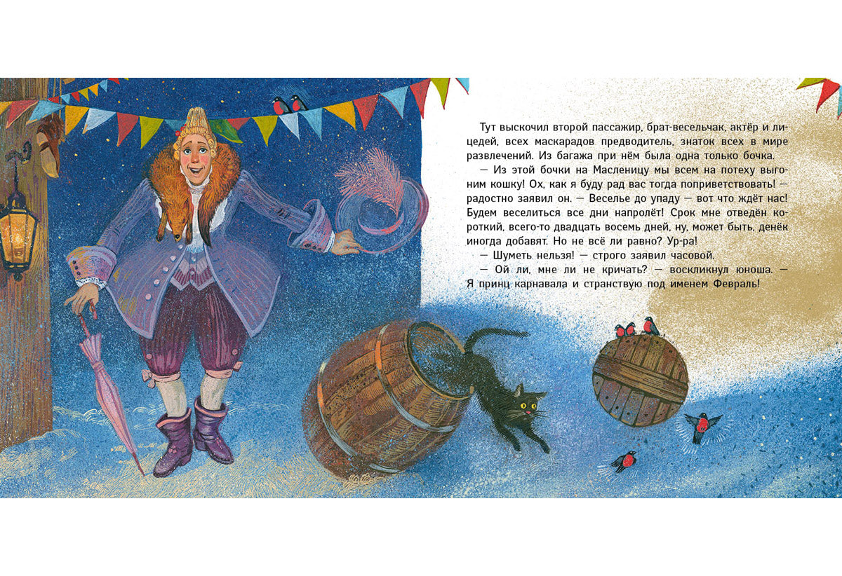 Handling time: 24 days В издательстве "Нигма" выходит новогодняя сказка Ганса Христиана Андерсена "Двенадцать пассажиров" с иллюстрациями Анны Хопта. Сказка была написана в 1861 году. Сказочник знакомит малышей с двенадцатью месяцами, раскрывает характер и особенности каждого из них.Двенадцать пассажиров приезжают в город в новогоднюю ночь, по очереди выходят из дилижанса и представляются. Устраивающий пышные пиры купец Январь. Весельчак, актер и лицедей, предводитель маскарадов Февраль. Высоко задирающий нос братец-Март. Балагур Апрель и певица Май. Прекрасная и гордая госпожа Июнь с младшим братом Июлем. Торговка фруктами, хозяйка всех рыбных прудов, матушка Август. Художник, мастер чудесных ярких красок господин Сентябрь. Запасливый Октябрь, помещик и охотник. Простуженный дровосек Ноябрь. И бабушка Декабрь с тёплой грелкой в обнимку.Художник Анна Хопта очень живо и красочно изобразила всех пассажиров необычного дилижанса. Каждому месяцу в книге отведён свой разворот. С иллюстрациями Анны в издательстве "Нигма" вышли книги "Алмаз Раджи", "Золотой жук", "Капитан Фракасс" и "Шевалье д'Арманталь".Для младшего школьного возраста.