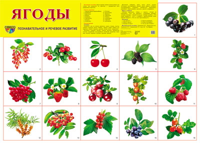 Демонстрационный плакат А2. Ягоды Демонстрационный материал предназначен для работы с детьми. Наглядное пособие 2 в 1: Можно использовать как плакат или разрезать на карточки - предметные (или разрезные) картинки. Рекомендуется использовать с методическими пособиями: Громовой О.Е., Косиновой Е.М., Лиманской О.Н., Ушаковой О.С., Шорыгиной Т.А. и др. (М.: ТЦ СФЕРА).
