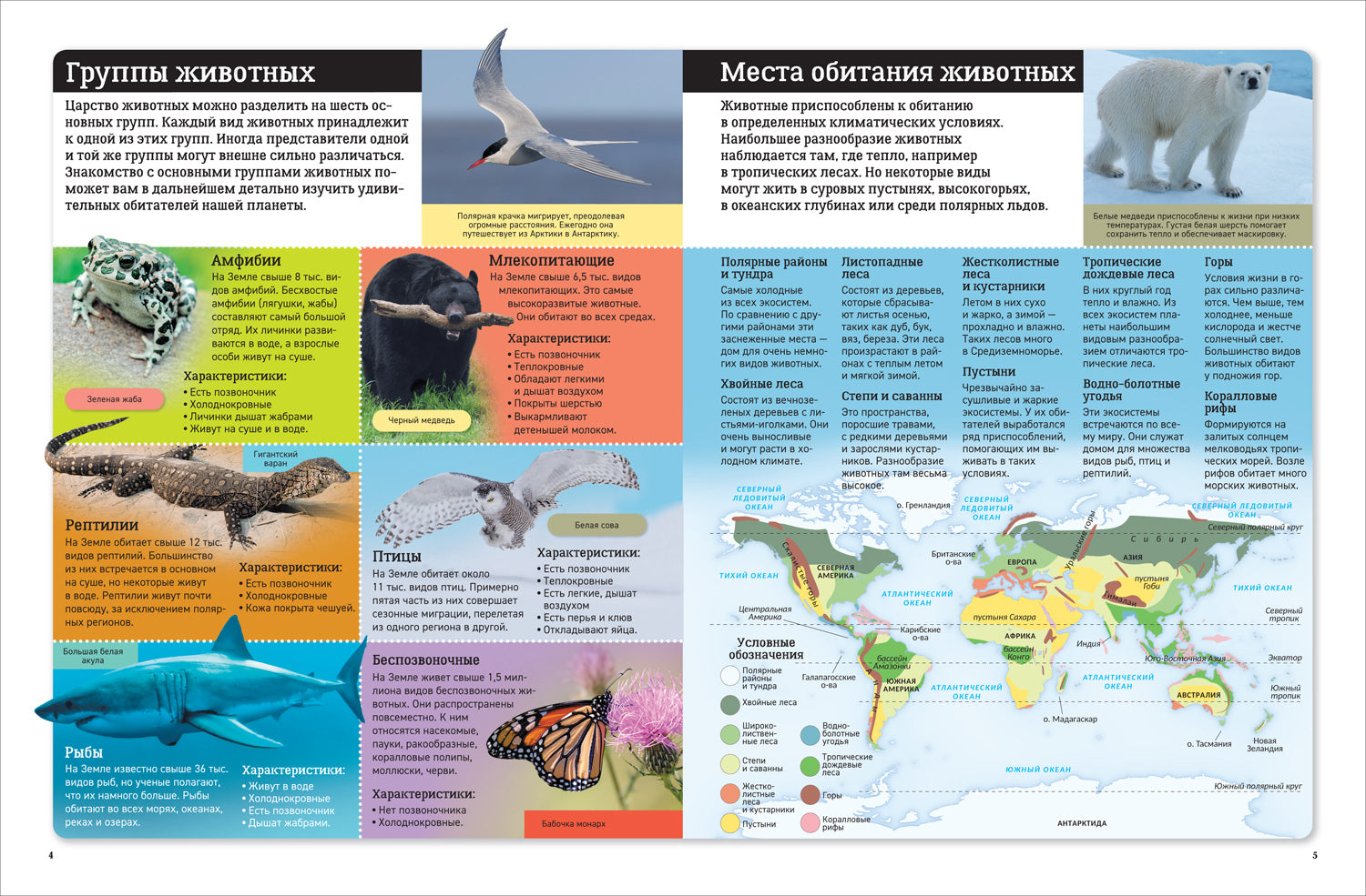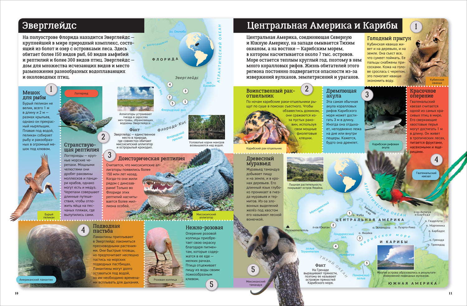 Handling time: 14 days Эта книга расскажет вам обо всех материках нашей планеты и познакомит с их удивительной живой природой. Вы побываете в покрытой льдами Антарктиде в гостях у императорских пингвинов, понаблюдаете за ягуарами в жарких тропических лесах Амазонии, подниметесь над высокими горами Южной Америки вместе с андским кондором и опуститесь в морские глубины Мирового океана вслед за горбатым китом. Вы узнаете о жизни и повадках самых разных животных, от крошечных карликовых поссумов до гигантских африканских слонов, а также о том, как все они приспосабливаются к условиям окружающей среды. А яркие иллюстрации и точные карты помогут вам не заблудиться в вашем путешествии!