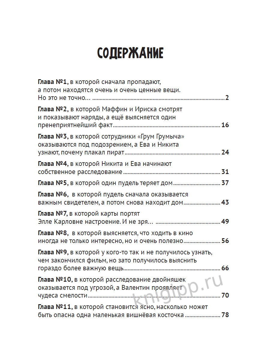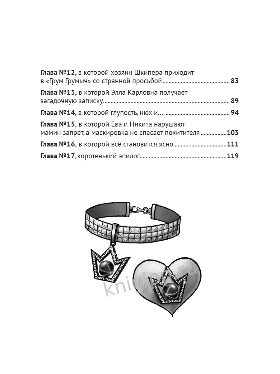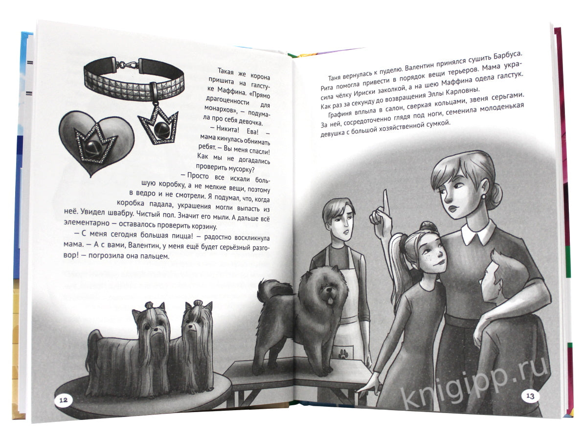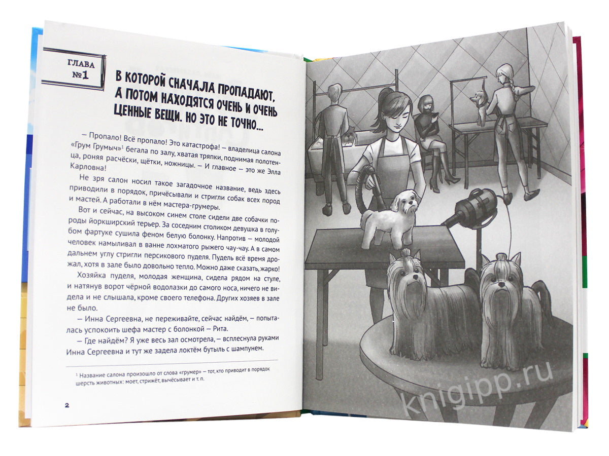 А вы бывали в «Грум Грумыче»? Нет? Тогда самое время взять своего питомца и отвести его к мастерам этого чудесного салона. Пенная ванна, стрижка — всё, что пожелает ваш четвероногий друг! Только будьте внимательны! Ненароком вы можете оказаться в гуще детективных событий, как наши герои. Ева и Никита — брат и сестра, а их мама — владелица салона красоты для животных, где и суждено было случиться необыкновенному приключению, благодаря которому ребята на время превратились в настоящих детективов и вместе с помощниками смогли разоблачить главного преступника. Детектив будет интересен читателям 8—12 лет.