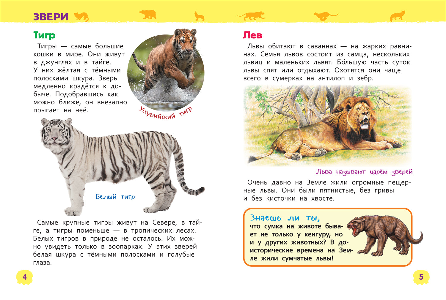 «Дикие животные. Энциклопедия для детского сада» содержит множество фактов о животных из разных уголков планеты, например: