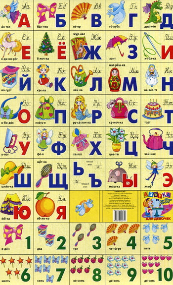 Вашему вниманию предлагается яркая, красочная азбука для дошкольников и младшего школьного возраста. Разрежьте плакат на отдельные карточки с буквами и цифрами, и процесс обучения можно превратить в увлекательную игру.