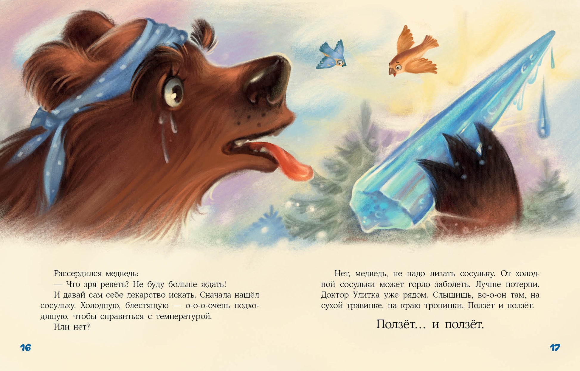 Handling time: 24 days Доктора Улитку знает каждый лесной житель! Она и занозу из носа у волка вытащила, и ёжику все больные иголки вылечила, а теперь спешит-ползёт к медведю - у бедняги сильный жар… До берлоги путь небыстрый - с пригорка на горку, с листочка на кочку, - но чудесный доктор обязательно доберётся и поможет мохнатому пациенту!Об авторе:Ольга Вербицкая - детский писатель, журналист, редактор. Ведущий редактор журнала «Малышарики». Полуфиналист конкурса «Короткое детское произведение» (2018), полуфиналист премии «Рукопись года» (2019), полуфиналист премии «Новая детская книга» (2019). Автор детских книг, вышедших в издательствах «Антология», «Аквилегия-М», «Волчок».Об иллюстраторе:Екатерина Варжунтович - художник-иллюстратор, преподаватель живописи. Окончила училище искусств и художественных ремесел имени В.В. Верещагина. Проиллюстрировала два десятка детских книг.