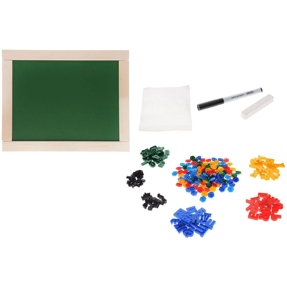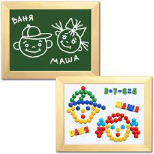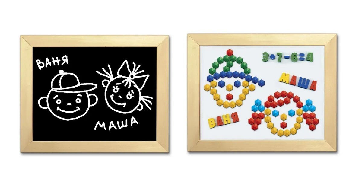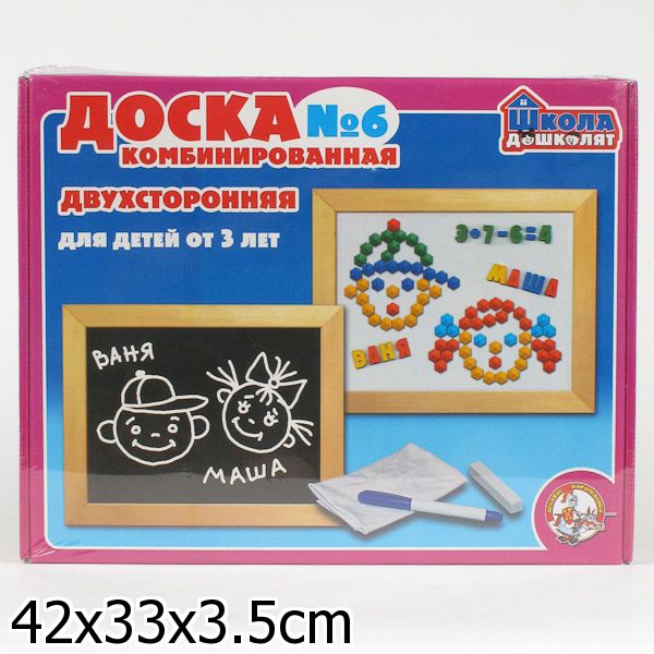 Доска комбинированная №6 (мел, маркер, набор букв рус.алфавита, цифр, знаков, вкладыши, магнитная шестигранная мозаика) новая упаковка (Россия)