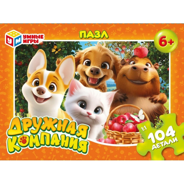 Дружная компания. Пазлы в коробке 104 детали. 190х141х35 мм. Умные игры в кор.24шт