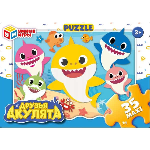 Друзья акулята. Макси-Пазлы. Пазлы в коробке. 35 деталей. 180х127х35 мм. Умные игры. в кор.24шт