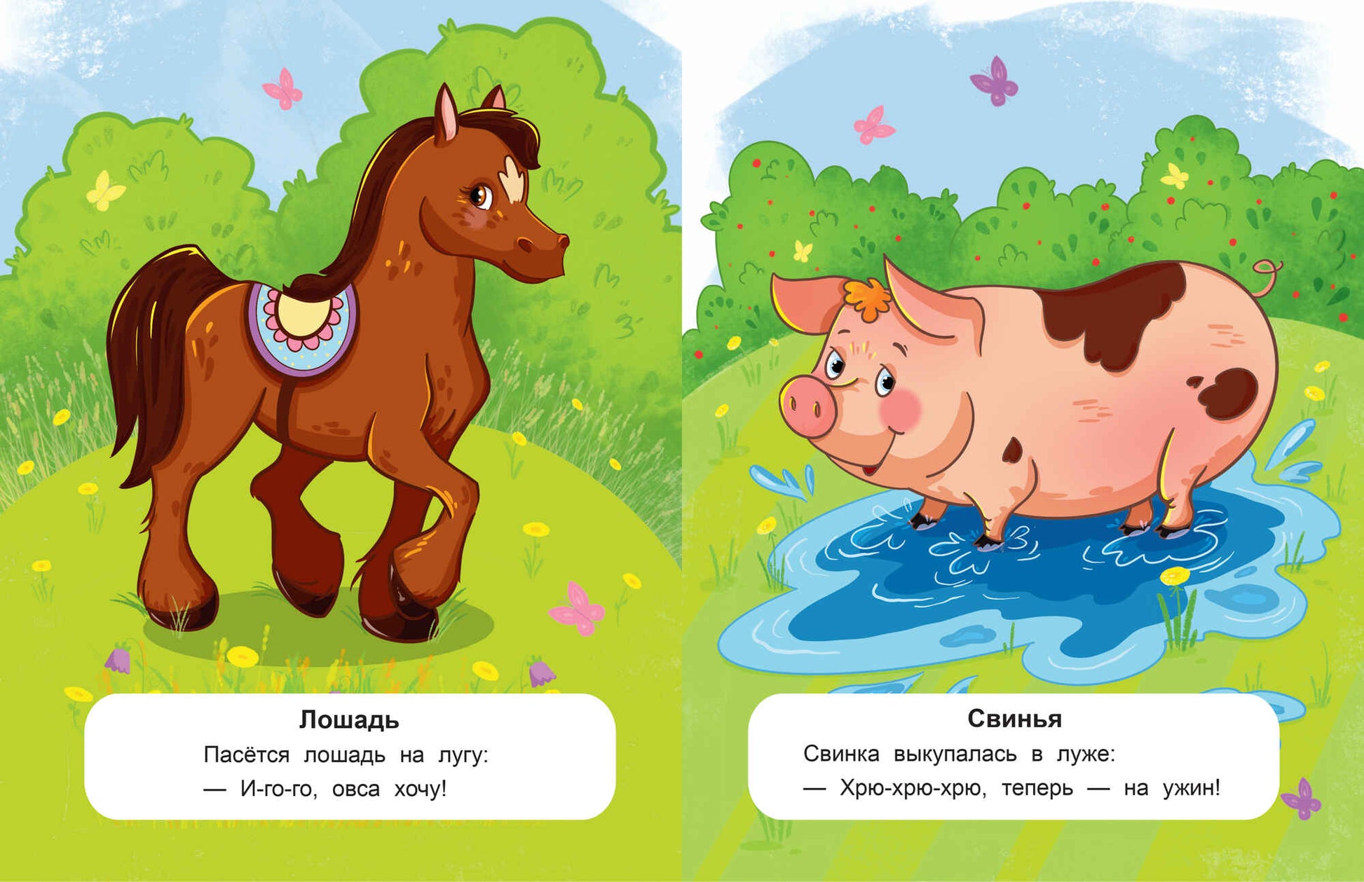 Животные фермы: стихи Серия "Мои первые книжки" отлично подойдёт для первого чтения малышу, начиная с пяти месяцев. Изображения животных узнаваемы, а милые образы способствуют развитию эстетического вкуса ребёнка. Читая книжку малышу, который уже учится говорить, полезно будет задавать развивающие вопросы, например: "Как говорит животное? Что ест и где живёт?"
