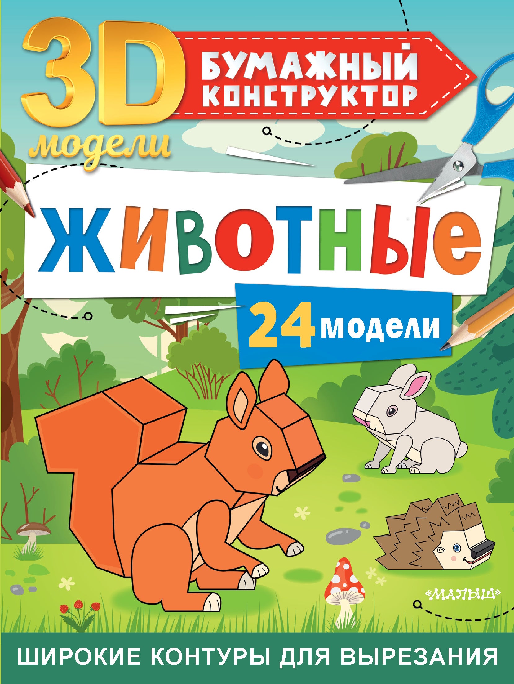 В этой книге детей ждёт:24 игровые 3D-модели животных с широкими контурами для вырезания.Развитие творческих навыков, пространственного мышления и несколько часов увлекательного и полезного досуга.Для дошкольного возраста.Уникальные игровые 3D-модели животных, которые можно вырезать и склеить самостоятельно!Это несколько часов увлекательного и полезного досуга: конструирование моделей из бумаги поможет ребёнку развить мелкую моторику, пространственное и творческое мышление. Кроме того, он узнает название разных животных и сможет отличить их друг от друга!Подарите малышу радость творчества!Четыре причины купить 124 уникальные 3D-модели животных. 2Широкие контуры для удобного и быстрого вырезания моделей. 3При сборке, склейке модели ребёнок может ошибиться. Но это не страшно. Каждая модель в книге специально продублирована, чтобы ребёнок мог попробовать сделать понравившуюся модель ещё раз. 4