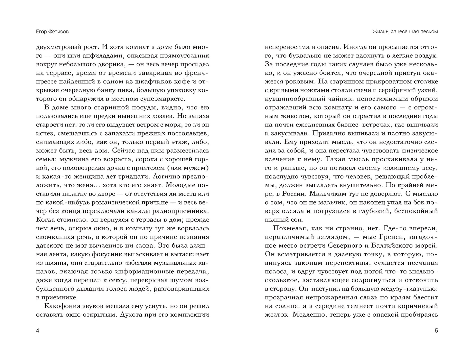 Вроде бы медовый месяц был только вчера, но кануло семь лет, и он уже слабо различал очертания чувств. Время занесло их песком, и кажется, что любовь, доверие, радость навсегда исчезли. Еще чуть-чуть - и настанет полное забвение. Герой рассказа "Жизнь, занесенная песком" так же, как и другие персонажи этой книги, пытается "откопать" собственную жизнь. В результате из-под толщи песка появляются события, воспоминания, на первый взгляд малопримечательные и случайные, однако оказывающиеся ключом к разгадке судьбы. Пять причин купить 1Интеллектуальная и многослойная проза с богатым психологическим подтекстом. 2Лонг-лист премий «Национальный бестселлер» и «Ясная Поляна». 3Тонкое и эстетическое «откапывание» собственной жизни, которую с годами заносит «песком времени». 4Сорок рассказов о мире вокруг, любви, человеке, одиночестве, счастье и о себе самом. 5Книга, которая погружает в глубины собственных мыслей и оказывает медитативное воздействие.
