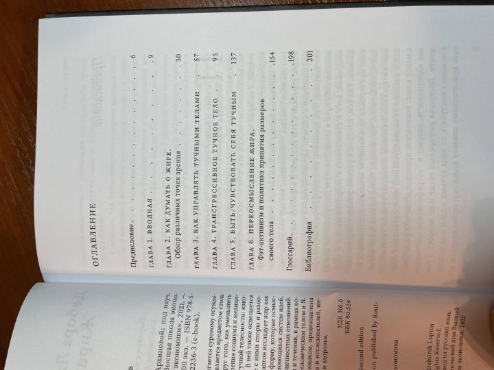 Handling time: 14 days Это книга о том, почему тучное тело подвергается суровому осуждению и считается патологическим, почему оно является предметом столь интенсивного обсуждения, вращающегося вокруг того, как уменьшить такое тело в размерах до приемлемых, с точки зрения социума и медицины, пропорций. Она посвящена живому опыту тучной телесности: каково это — быть тучным в жирофобном обществе. В ней также освещается фэт-активизм, политика ожирения и связанные с ними споры и разногласия. Всемирно известный социолог Дебора Лаптон исследует жир как артефакт: как телесную субстанцию и телесную форму, которые осмысляются сквозь призму сложных и постоянно меняющихся систем идей, практик, эмоций, материальных объектов и межличностных отношений. Этот анализ выявляет более широкие контексты и течения, в рамках которых осуществляются практики, связанные с человеческим телом и Я.Книга, написанная живым, увлекательным языком, предназначена как для широкой аудитории, так и для студентов и исследователей, интересующихся вопросами политики телесности и здоровья.Рецензии:• Интернет-портал Republic.ru 20.11.2020