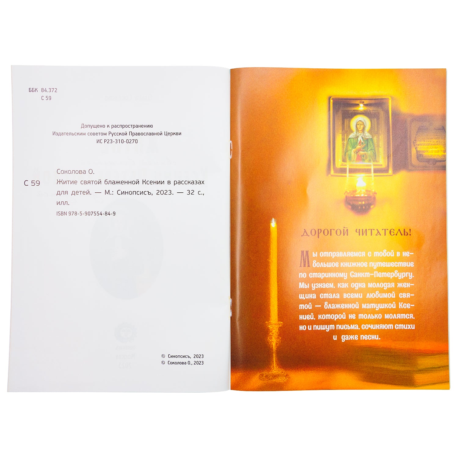 В этой книге в адаптированной для детей форме изложено житие великой русской святой — Ксении Петербургской, Христа ради юродивой. Подвиг юродства, один из наиболее трудных видов подвижничества и при этом самый загадочный для постороннего взгляда, в этой книге описан простым, но живым языком, позволяя детям познакомиться с житием в интересной и доступной для них форме. Эта книга предназначена для детей от 4 лет. А еще такая книга прекрасно подойдет для совместного семейного чтения вечером.