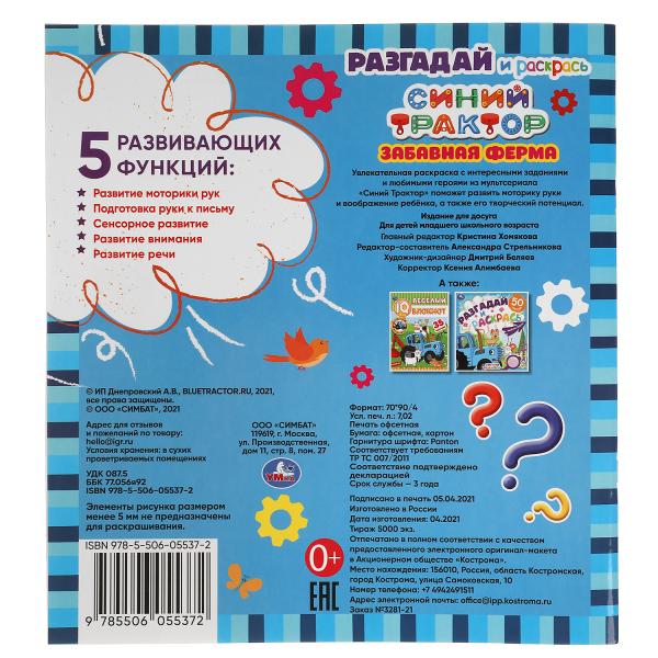 Handling time: 24 days Раскраска «Синий трактор. Забавная ферма» из серии «Разгадай и раскрась» ТМ «УМка» станет прекрасным подарком для поклонников мультсериала про весёлый трактор:- 50 интересных заданий- тщательно прорисованные картинки для раскрашивания- большой формат
