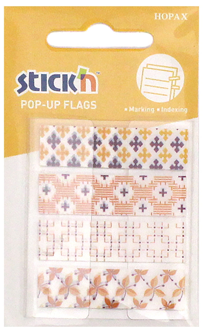 Закладки самоклеящиеся пластиковые с оранжевыми узорами, 45х12 мм, 4 вида по 20 штук.Сделано в Китае.