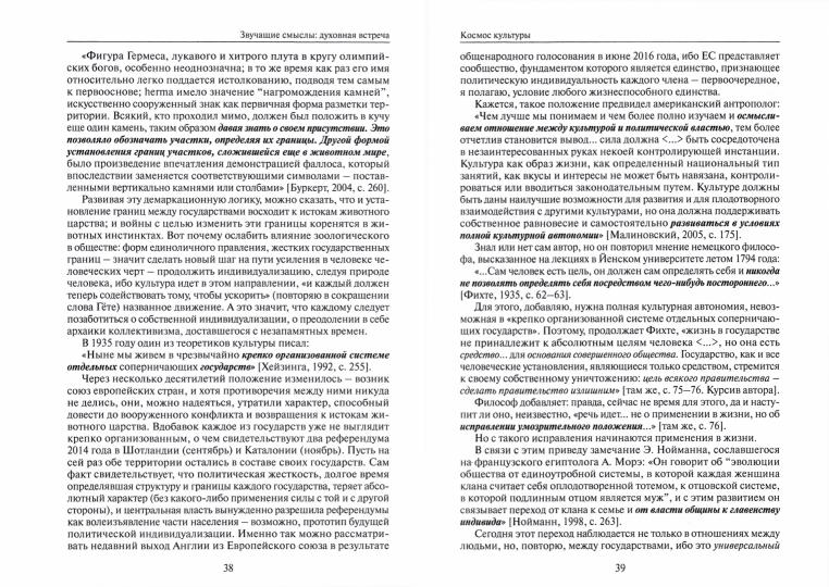 Handling time: 14 days В культурологическом альманахе происходит духовная встреча и диалог отечественных и зарубежных мыслителей. В него включены исследования культурологов, философов, литературоведов, а также переводы работ М. Анри, Ю. Кристевой, Ж.-Л. Мариона, Г. Марселя, А. Шюца. Освещается многообразие проблем, находящихся в центре рассмотрения мыслителей. Это и рождение концептосферы русской культуры как ее структурно-семантического каркаса, и проблемы теории романтизма, и исследование радикальной критики философского языка, предпринятой религиозными мыслителями Серебряного века, формирование нового религиозного сознания, переосмысление традиционных представлений о добре и зле, анализ проекта "генеалогии этики" М. Фуко через соотнесение его с проектом генеалогии морали Ф. Ницше. Представлены концепции человека и культуры выдающихся мыслителей - А. Бергсона, Г. Зиммеля, Э. Кассирера, Г. Марселя, М. Шелера, А. Швейцера, А. Шюца, вошедших в историю как выразители кризисных явлений своего времени. Раскрываются возможности сакрального диалога с мирозданием, своеобразие "философии невыразимого".Составитель Левит С.Я.