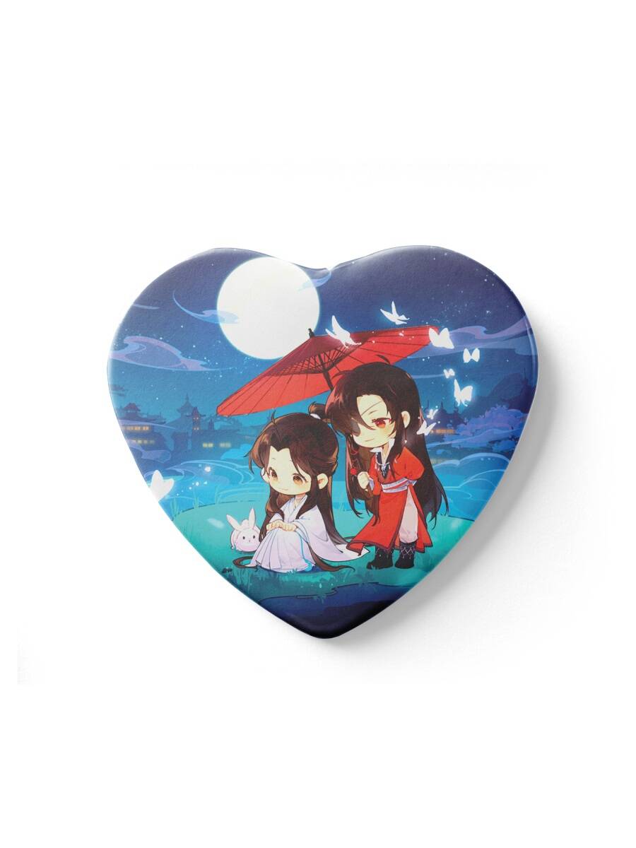 Значок металлический "Благословение небожителей. Чиби под зонтом. Сердце"