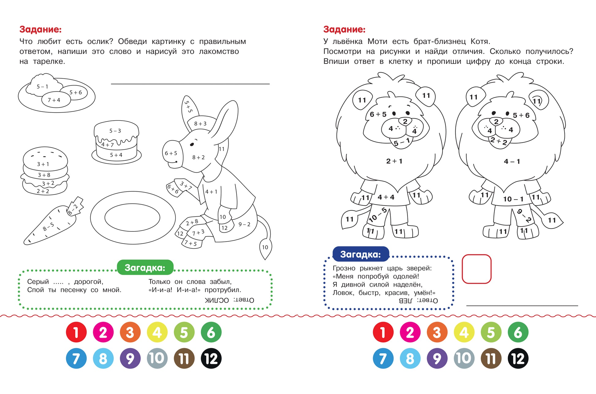 Handling time: 19 days Умные раскраски с примерами помогут ребёнку весело и с пользой провести время, в игровой форме развивая у него внимание и память. Весёлые задания направлены на стимуляцию мелкой моторики и мышления, а также помогут закрепить начальные навыки счёта, чтения и письма. Решив простой пример, ребёнок запомнит цифры и цвета, а авторские загадки и стихи с договариванием на каждой странице, сопровождаемые ответами, прекрасно подойдут для первого самостоятельного чтения.
