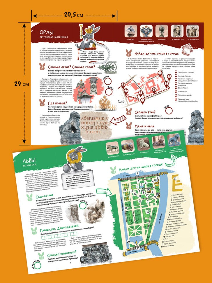 • узнаете, что охраняют грифоны. Вас ждет множество неожиданных открытий, 55 увлекательных заданий и настольная игра-ходилка, которую можно использовать как маршрут для настоящей прогулки-квеста.