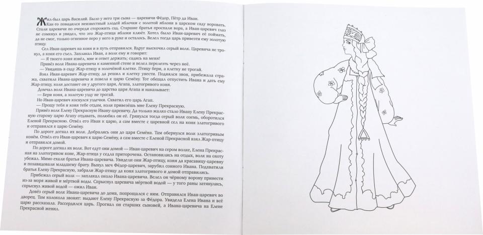 Классическая русская народная сказка в кратком пересказе Елены Киричек (по И. В. Карнауховой) с чёрно-белыми иллюстрациями, технологически подготовленными к раскрашиванию карандашами, фломастерами или красками. Отправил как-то царь своего младшего сына Ивана-царевича добыть Жар-птицу. Встретился герою на пути серый волк. Съел серый волк коня Ивана-царевича, а за это обещал помочь выполнить царское повеление… Сказки существуют для того, чтобы их рассказывать! Книга даёт прекрасную возможность детям и взрослым заново пересказать любимую сказку и по-своему её раскрасить.