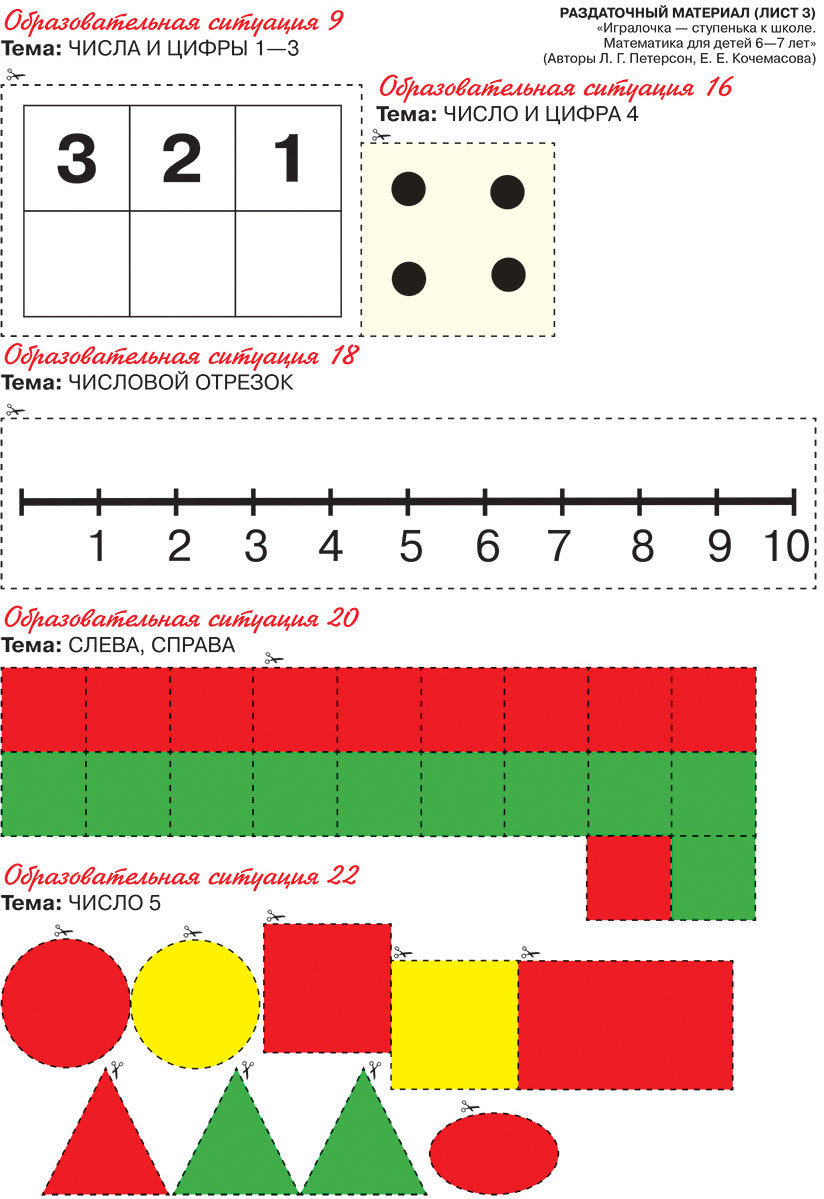 РАЗДАТОЧНЫЙ МАТЕРИАЛ предназначен для использования одним ребенком и расположен на отдельных листах. Вверху каждого листа имеется номер и тема занятия, на котором данный материал используется.