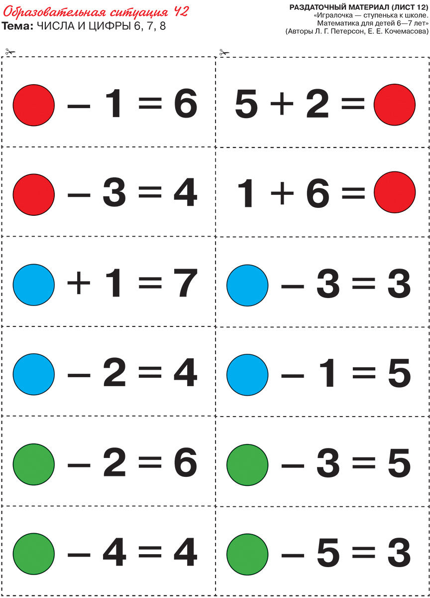 Для удобства пользования раздаточным материалом сначала следует наклеить на каждый конверт номер и тему занятия. После этого, начиная с первого занятия, нужно по пунктирным линиям вырезать карточки, картинки, геометрические фигуры и складывать в соответствующие конверты.