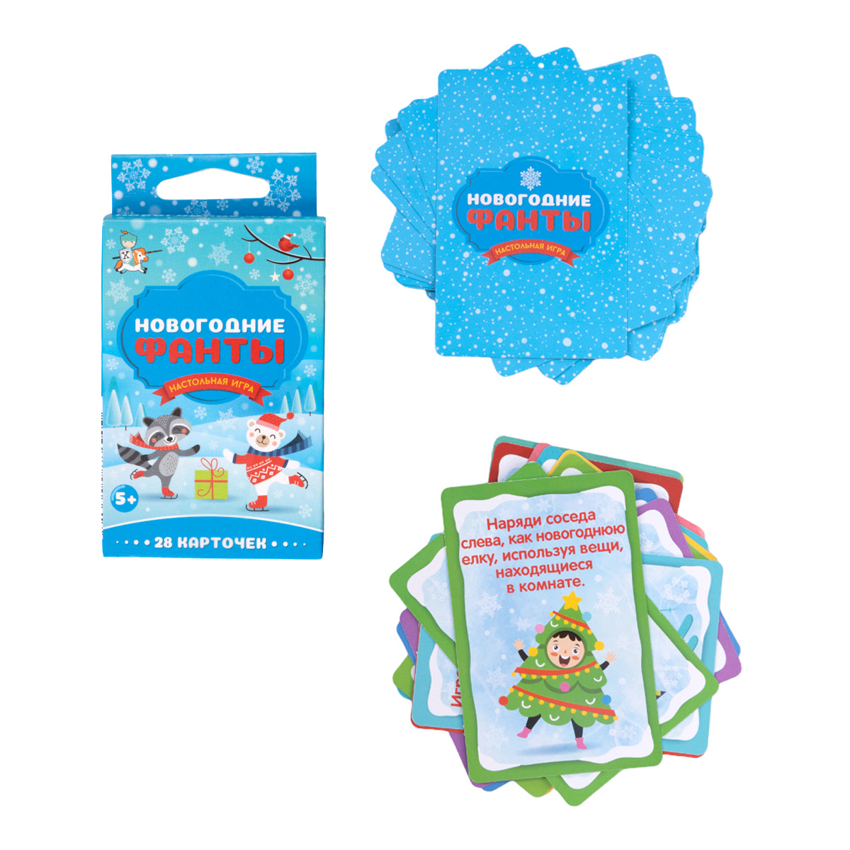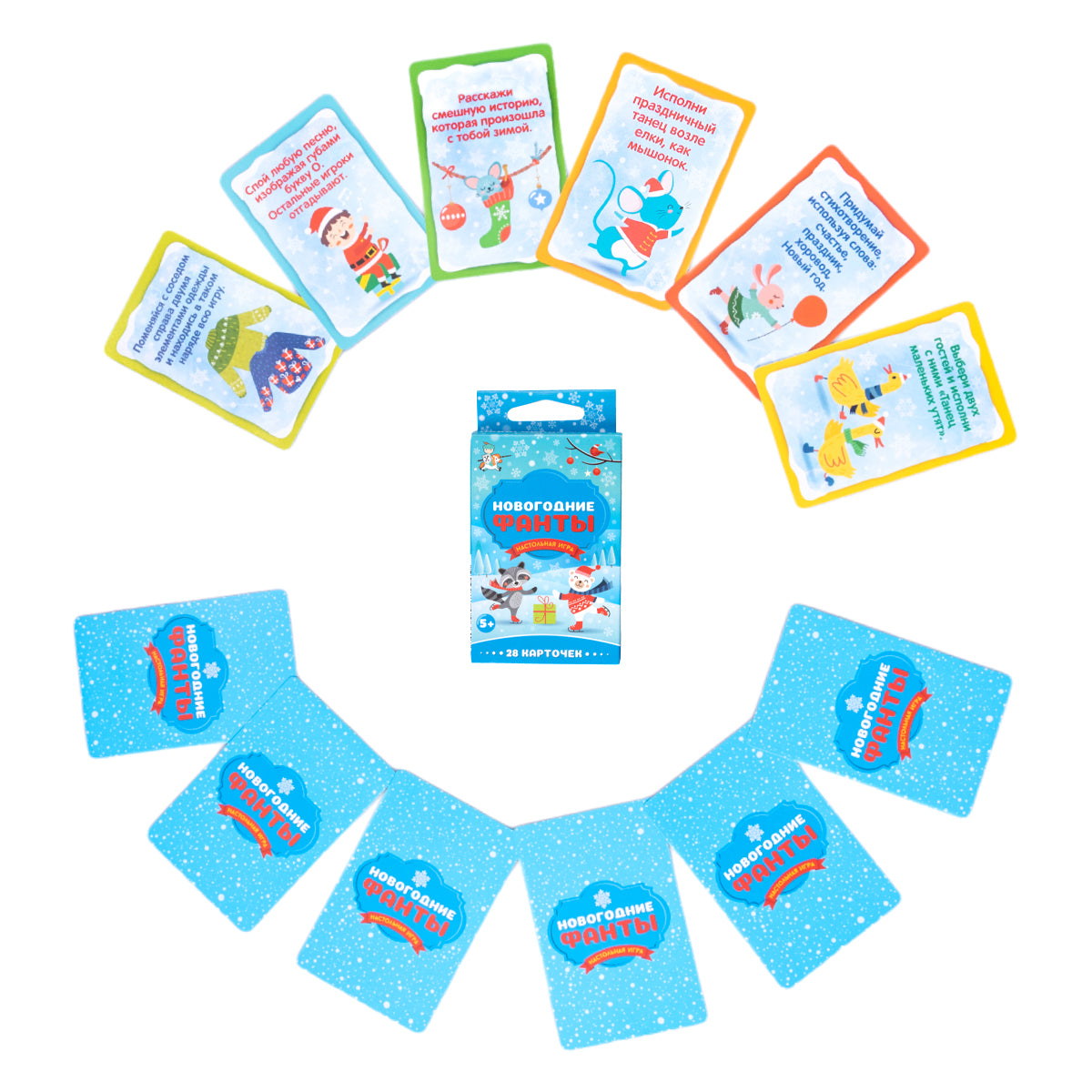 Handling time: 24 days Настольная игра «Новогоднее ФАНТЫ». Состав набора: карточки из картона – 28 шт. (8,5 х 5,5 см), инструкция – 1 шт. Материал: картон, бумага. Для детей от 5 лет. Игра поможет весело провести время, раскрыть свои таланты и таланты друзей. Способствует развитию фантазии и образного мышления, тренирует чувство юмора.
