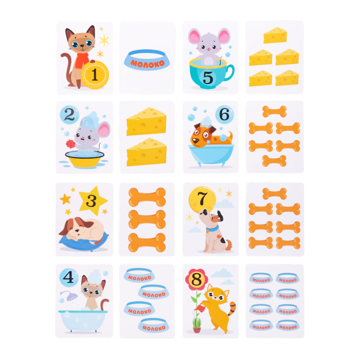 Handling time: 24 days Игра обучающая "ЗвероСчёт" серия Учись, играя. Состав:игровые карточки из картона - 60 шт. (из них 30 - со зверушками; 30 - с едой),правила игры.Материал: картон, бумага. Рекомендовано для детей старше 3 лет.