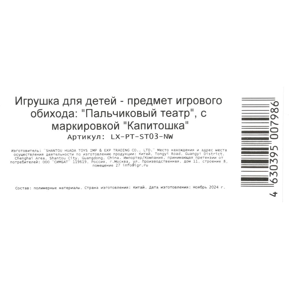 Игрушка "Игрушка для ванны пальчиковый театр сказка "теремок" на блист. КАПИТОШКА в кор.2*12шт". Размер: 0.044.