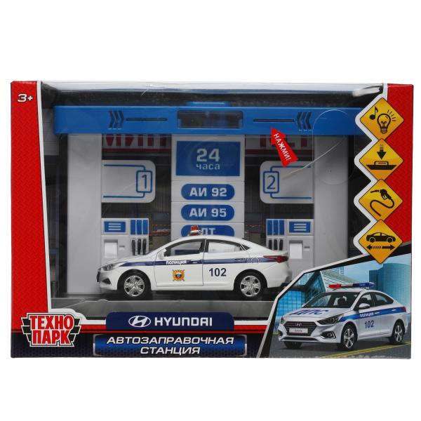 Игрушка пластик свет-звук АВТОЗАПРАВОЧНАЯ СТАНЦИЯ 21 см, С МАШИНКОЙ, кор. Технопарк в кор.2*24шт
