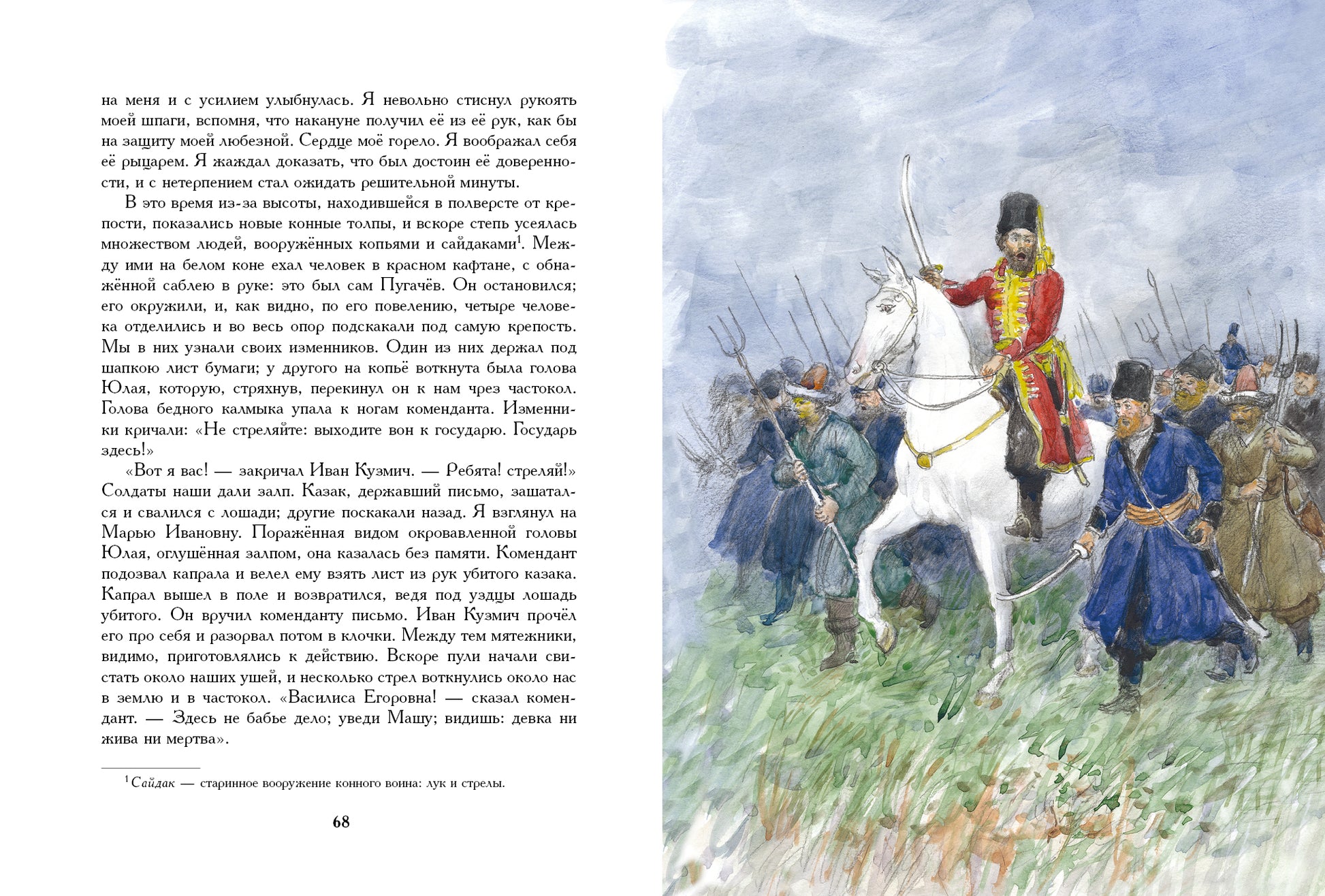 Handling time: 24 days “Капитанская дочка” - последнее крупное произведение А. С. Пушкина в прозе и результат его глубоких исследований истории пугачевских восстаний, захлестнувших Россию во второй половине XVIII века. Но ведущей в романе остается любовная линия, и остросюжетная личная история молодого офицера Петра Гринева и Маши Мироновой, дочери коменданта пограничной крепости, делает этот текст не только глубоким, но и захватывающим внимание читателей.