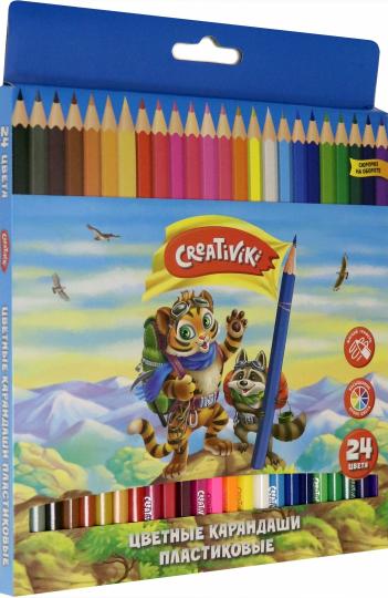 Карандаши цв. 24цв шестигранные пластик,ЦКП24КР