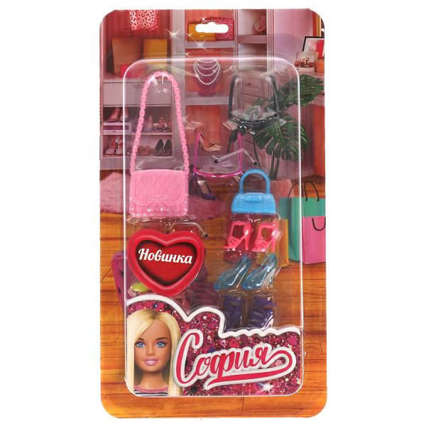 Карапуз. Аксессуары для кукол "Модница" для Софии, обувь,очки,сумочка, блистер, арт.AC11-S-BB