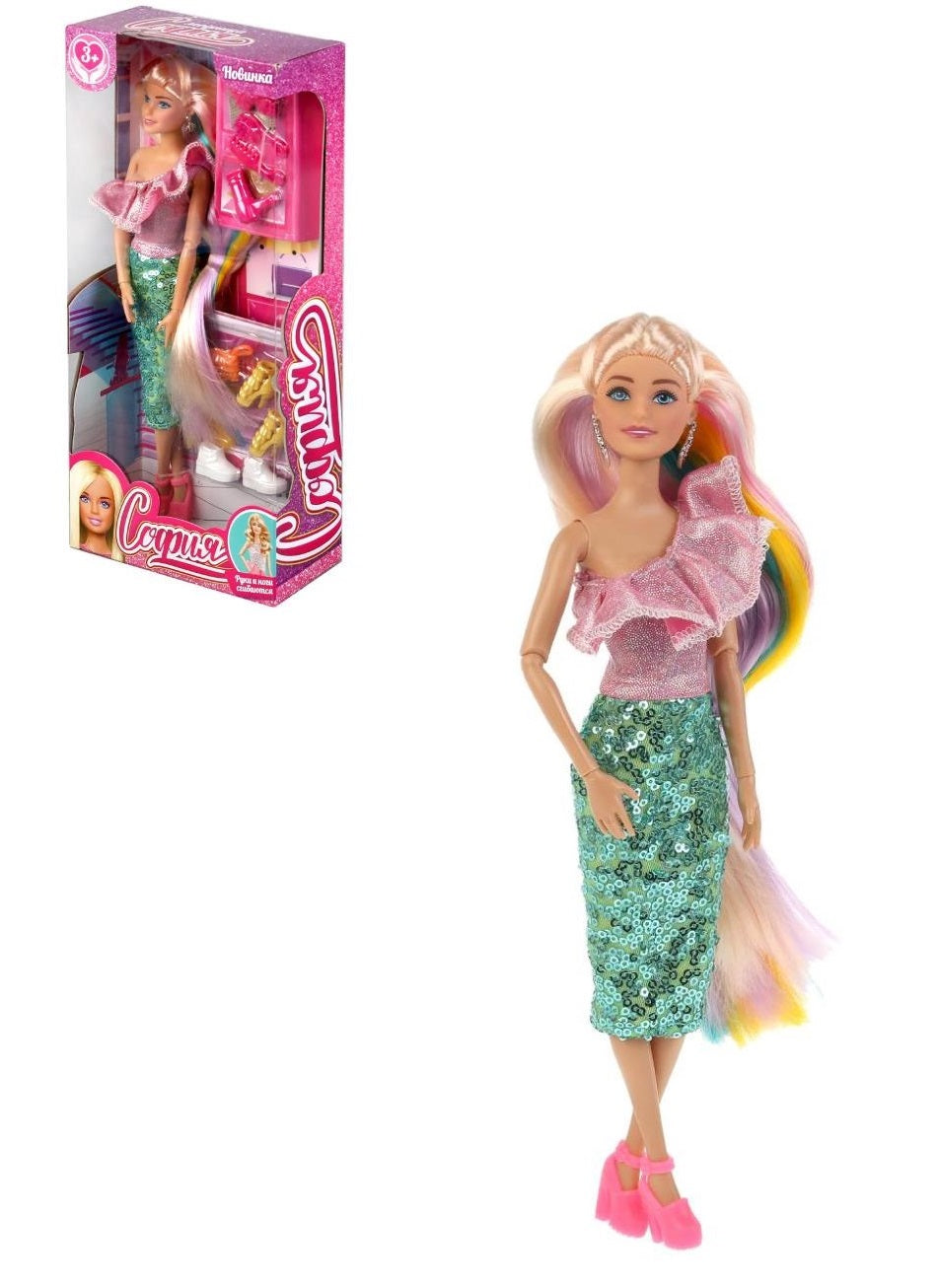Handling time: 30 days Кукла «София» ТМ «Карапуз» станет прекрасным подарком для вашей принцессы:- руки и ноги сгибаются- радужные волосыВ комплекте:- сумочка- 2 пары обуви- фен- расчёска-гребень- расчёска-щётка- 2 заколкиМодница София одета в нежно-розовый топ с об