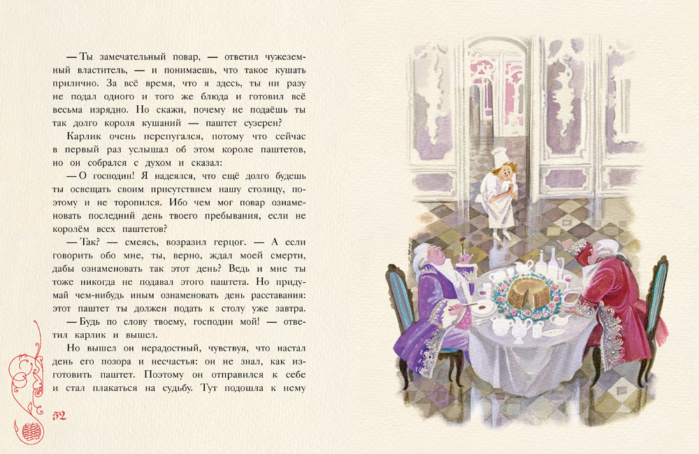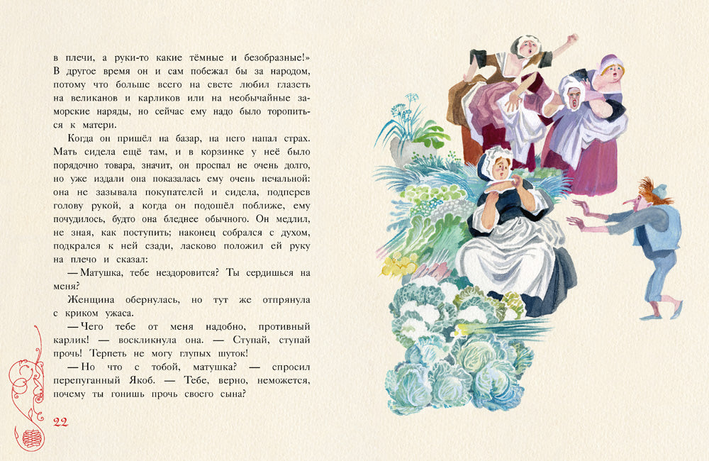 Сказка «Карлик Нос» — о хорошеньком избалованном мальчишке, который насмеялся над уродством старого человека и в результате сам стал уродцем, над которым смеются окружающие. Поэтично и трогательно сказку проиллюстрировала известный художник Ника Гольц.