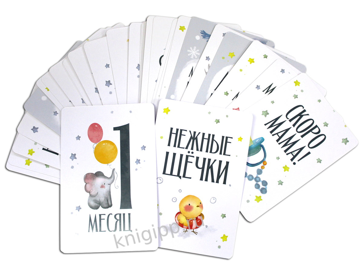 Перед вами набор карточек для фотосессии с малышом. С их помощью вы сможете запечатлеть значимые события в жизни вашего крохи, например первую прогулку, появление зубика или любимую игрушку, зафиксировать его рост и развитие по месяцам. В наборе 30 двусторонних карточек — 12 карточек по месяцам и 18 карточек для разнообразных фотосессий.