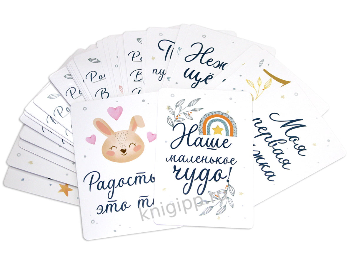 Перед вами набор карточек для фотосессии с малышом. С их помощью вы сможете запечатлеть значимые события в жизни вашего крохи, например первую прогулку, появление зубика или любимую игрушку, зафиксировать его рост и развитие по месяцам. В наборе 30 двусторонних карточек — 12 карточек по месяцам и 18 карточек для разнообразных фотосессий.