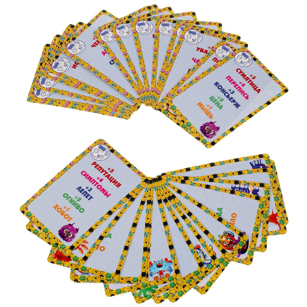 В данный набор входят двусторонние карточки, с одной стороны которых написано 5 слов для объяснения с помощью речи, с другой - 5 слов, которые нужно объяснить с помощью мимики и жестов. Рядом с каждым словом указано количество баллов, которые можно получить за его объяснение или угадывание. Игрок, набравший наибольшее количество баллов за игру, становится победителем. Благодаря компактному размеру, набор можно взять с собой в поездку, чтобы весело скоротать время в дороге.