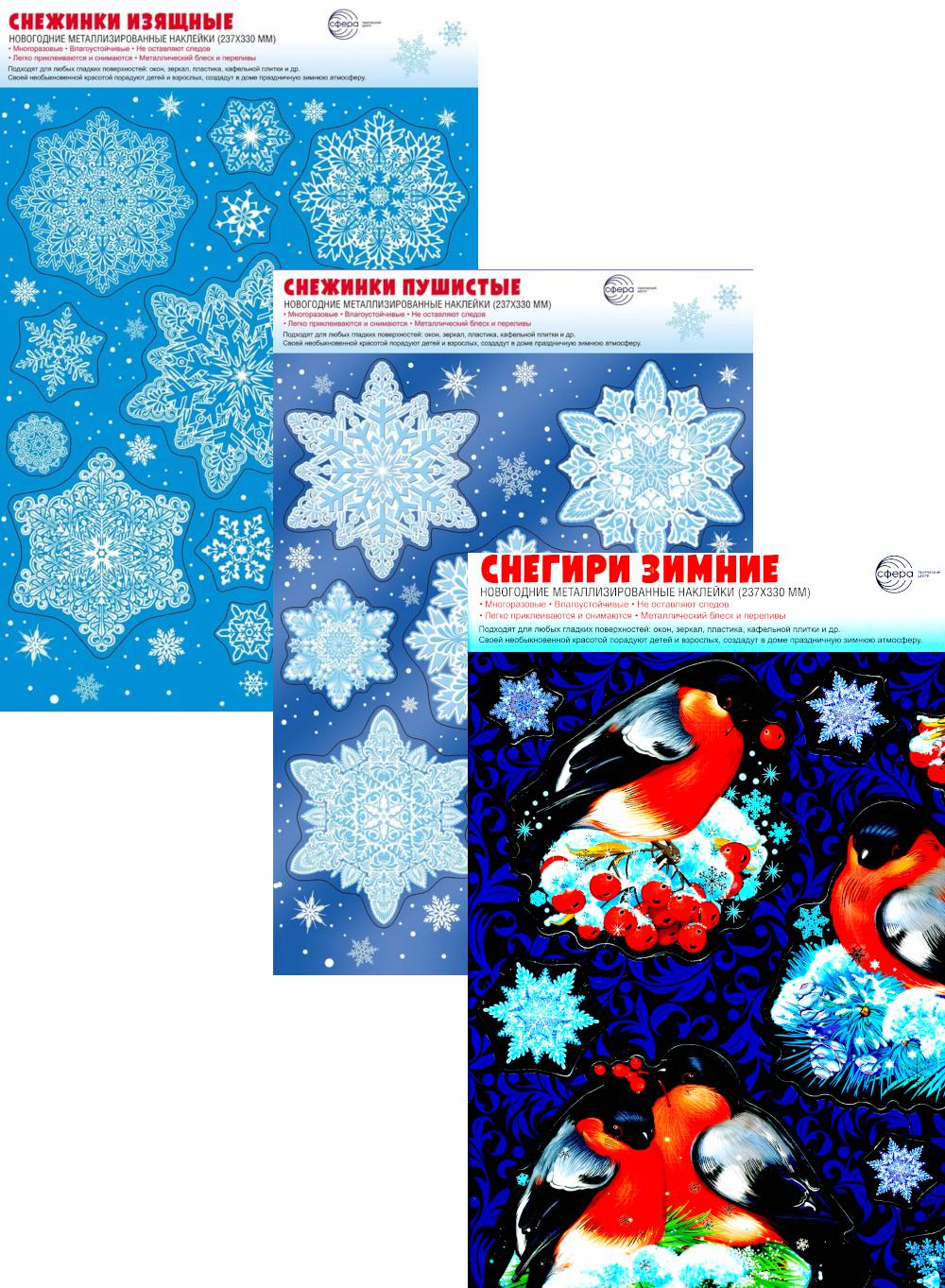 — НМТ-15338 Новогодние наклейки на окна А4+. Снегири зимние (серебряная металлизация, многоразовые)