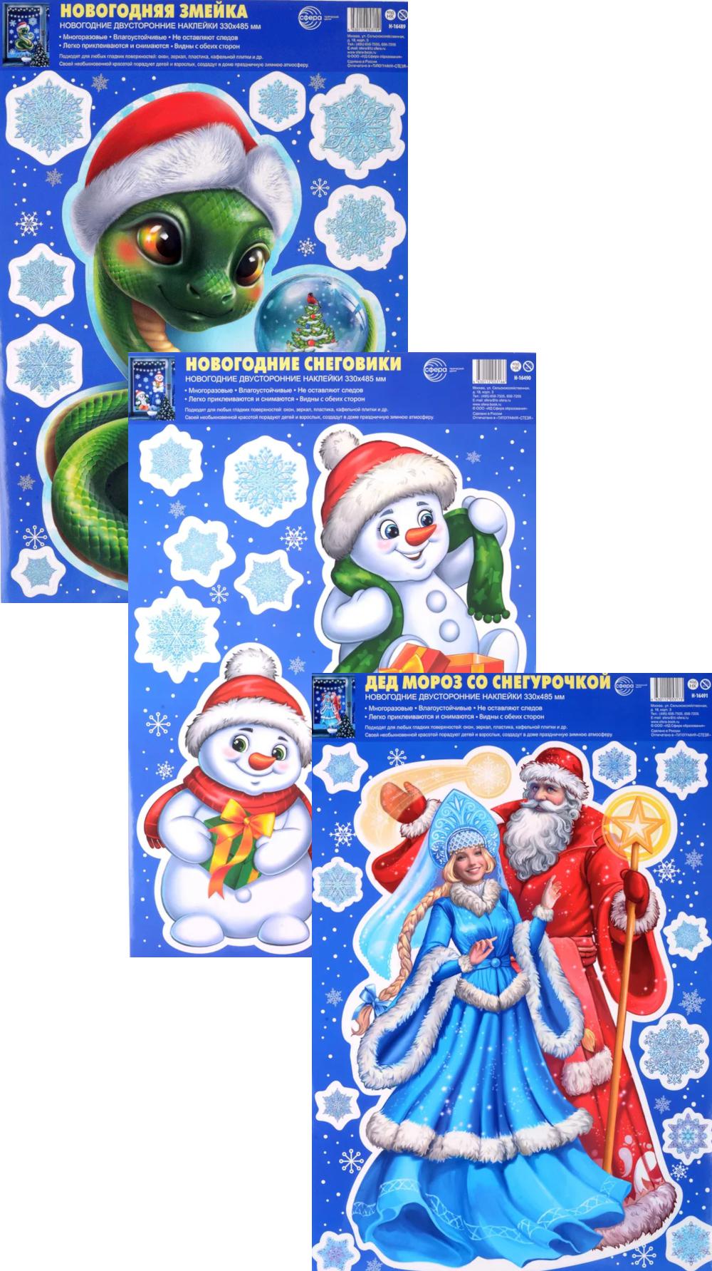 *КБН-17194 Комплект новогодних наклеек А3+. Символ года-2 (3 наклейки, многоразовые, видны с обеих сторон)