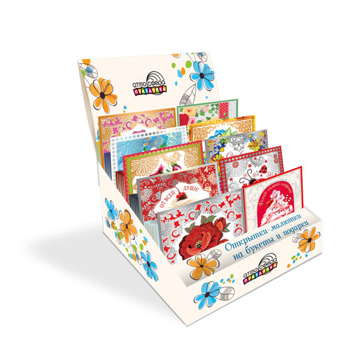 *КБ-14645 Набор поздравительных мини-открыток для женщин в ассортименте. 100 шт. в шоу-боксе: 10 видов по 10 шт