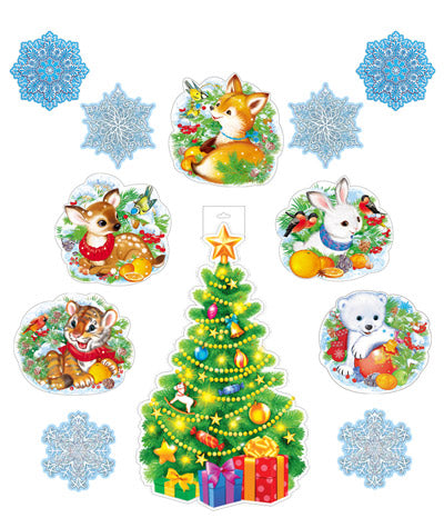 *КБ-17083 Комплект для оформления интерьера. С Новым годом! (плакат А3, 5 плакатов А4 и 3 фигуры по 2 шт.)