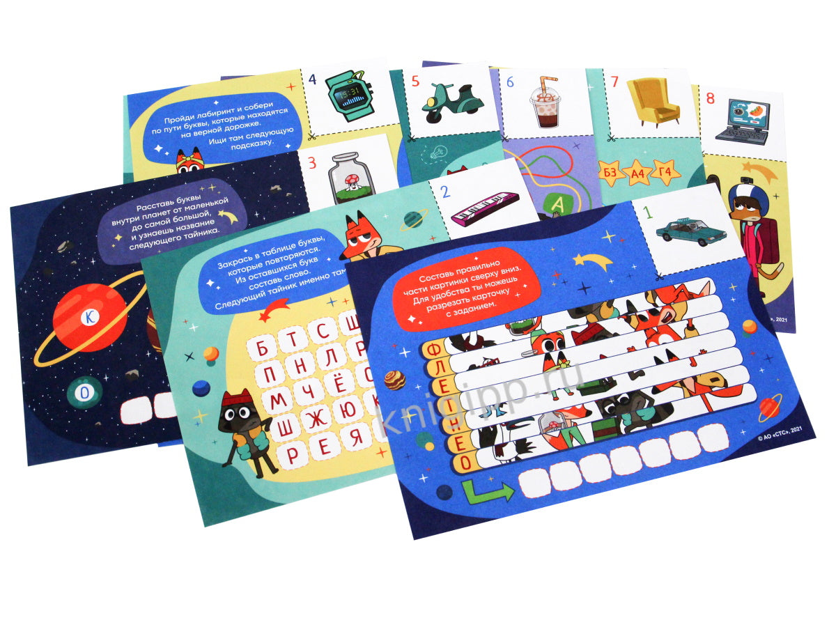 Мечтаете наполнить волшебством детский праздник? Хотите, чтобы ребёнок надолго запомнил ваш подарок? Тогда вы нашли то, что искали! Превратите простое поздравление в увлекательный квест! Спрячьте заранее приготовленный вами подарок, а "Квест" поможет малышу отыскать его. Ему предстоит выполнить задания, расшифровать подсказки и восстановить карту, которая подскажет правильный путь.В наборе: конверт, карта, вкладыш с наклейками, письмо от Лекса и Плу, инструкция и 8 листов с заданиями.
