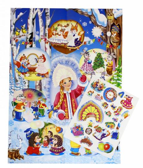 А вы готовы к новогоднему празднику?Этот плакат - целое новогоднее приключение, в котором вы шаг за шагом помогаете персонажам подготовиться к празднованию Нового года. Клейте наклейки, выполняйте задания и заряжайтесь праздничным настроением!Размер плаката: 420х590.