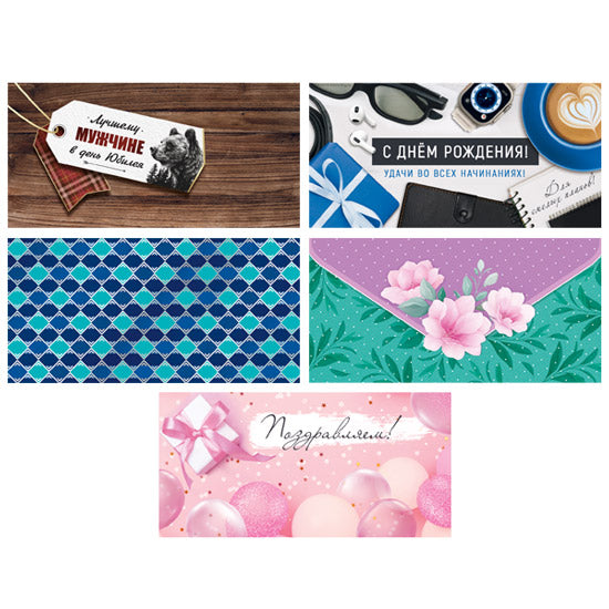 *КД-17590 Комплект конвертов для денег на склейке. Юбилярам-3 (5 шт.)