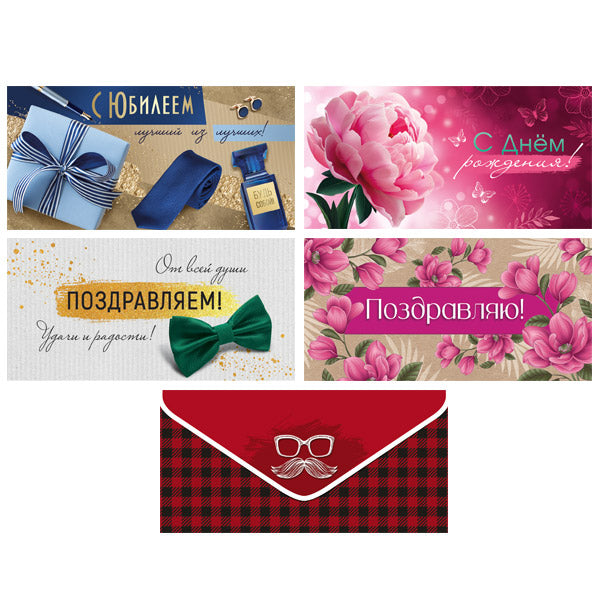 *КД-17595 Комплект конвертов для денег на склейке. От всей души с Юбилеем! (5 шт.)