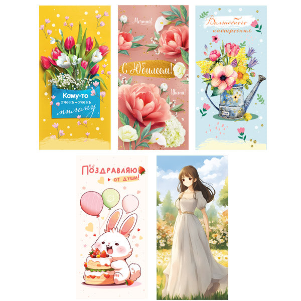 *КД-17598 Комплект конвертов для денег на склейке. Поздравляем от души с Юбилеем! (5 шт., вертикальный)