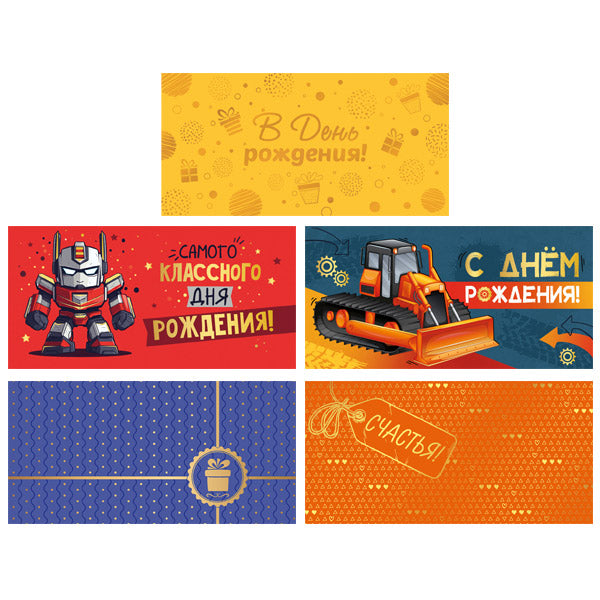 *КД-17601 Комплект конвертов для денег на склейке. Самого классного дня рождения! (5 шт., золотая фольга)