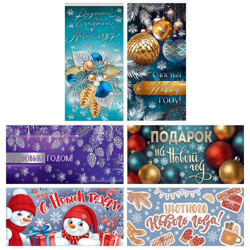 *КД-17606 Комплект конвертов для денег на склейке. Счастья и уюта в Новом Году (6 шт.)