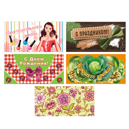 Handling time: 24 days Комплект состоит из 5-ти видов конвертов для денег, покрытых УФ-лаком: